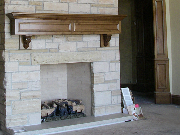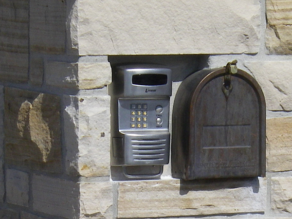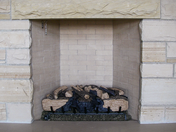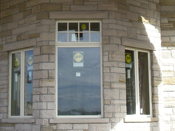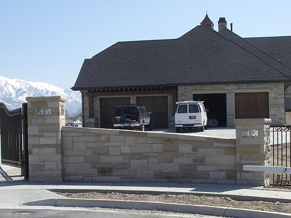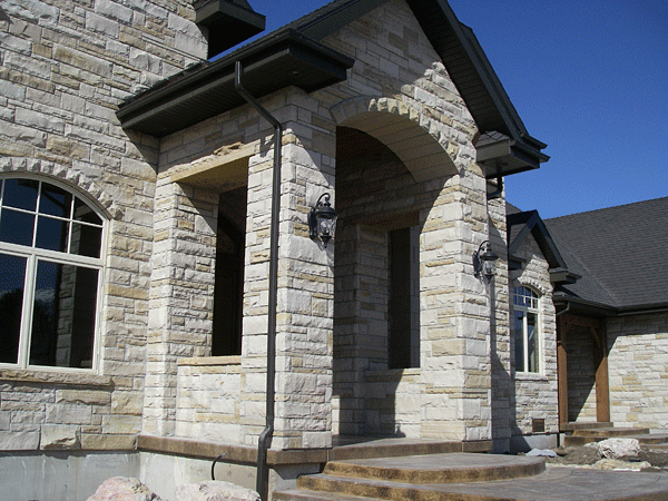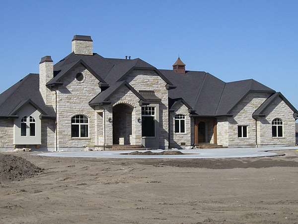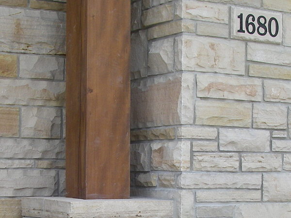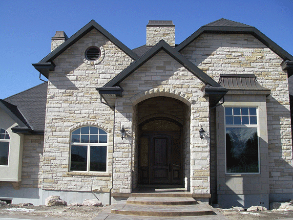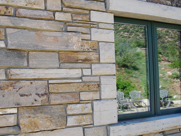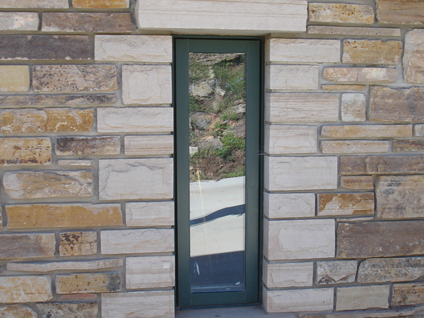 Buff stone veneer on a utility building. -