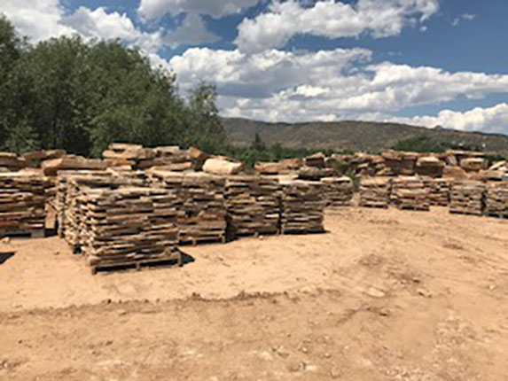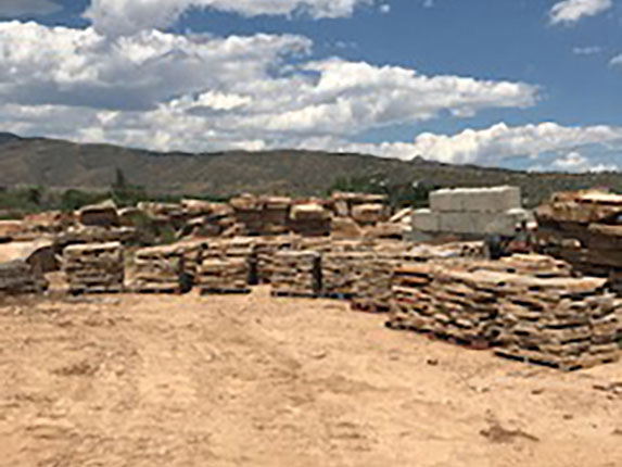 Stones stacked on pallets for custom order. -