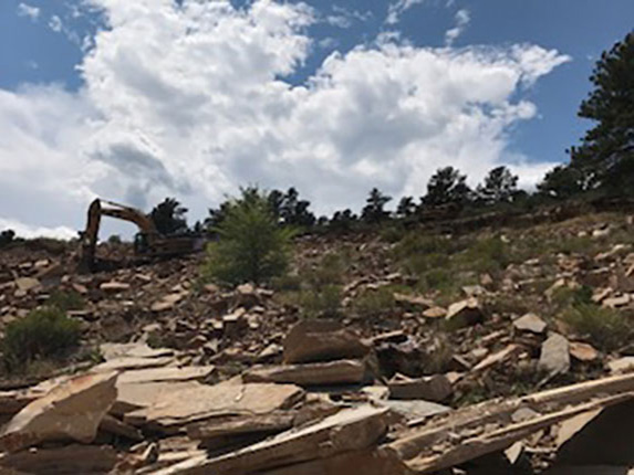 More stone being excavated on the hillside. -