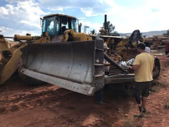 Working on the bulldozer. -